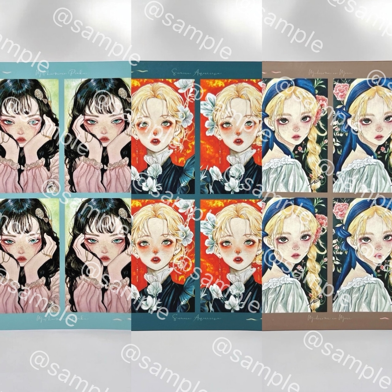 原画作品《マシュマロぴんく》《聖なるアマリリス》《まどろみの森》をステッカーとして仕上げました。高画質での再現と発色にこだわり、手作業で一枚ずつ丁寧にプリントしています。お好きな作品をお選びください。